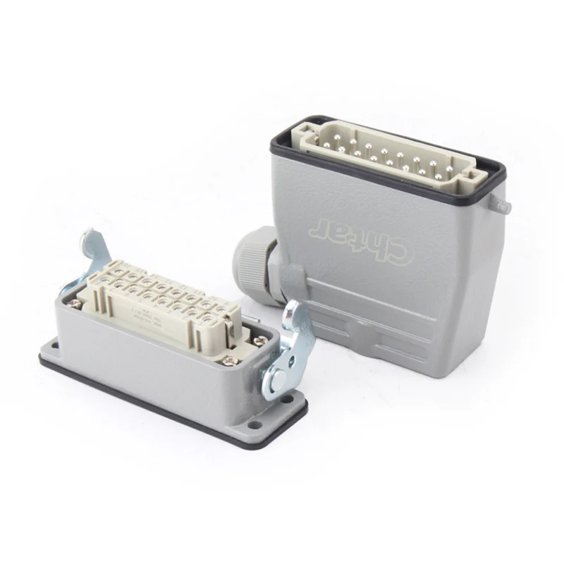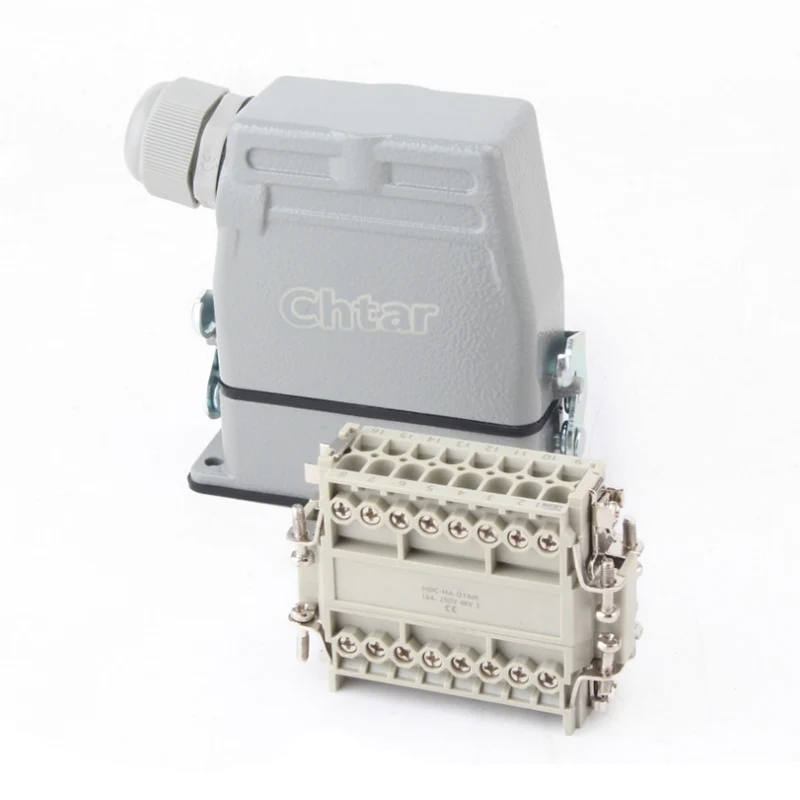 HE-016-мен салыстырғанда, CHTAR берік 16A 10 істікшелі кірістіру ауыр жүк қосқышы 16 істікшелі шағын нұсқасы болып табылады. Ол кішірек кеңістікте жұмыс істей алады. Олар әдетте HA-016 алюминий корпусымен бірге жиналады. Олар жоғары берік компьютерден жасалған және ішінде жезден күміс жалатылған түйреуіштер бар. Онда 16 сым арқылы қосылған 16 түйреуіш бар. Біздің зауыт Қытайдың Чжэцзян провинциясының Юэцин қаласында орналасқан. Біз 10 жылдан астам ауыр жүкті қосқыштарды шығарамыз және экспорттық саудада 15 жылдан астам тәжірибеміз бар. Біз сіздің Қытайдағы сенімді ұзақ мерзімді серіктес болуды асыға күтеміз.