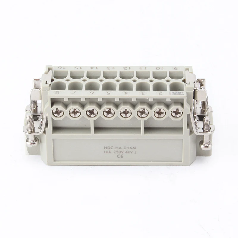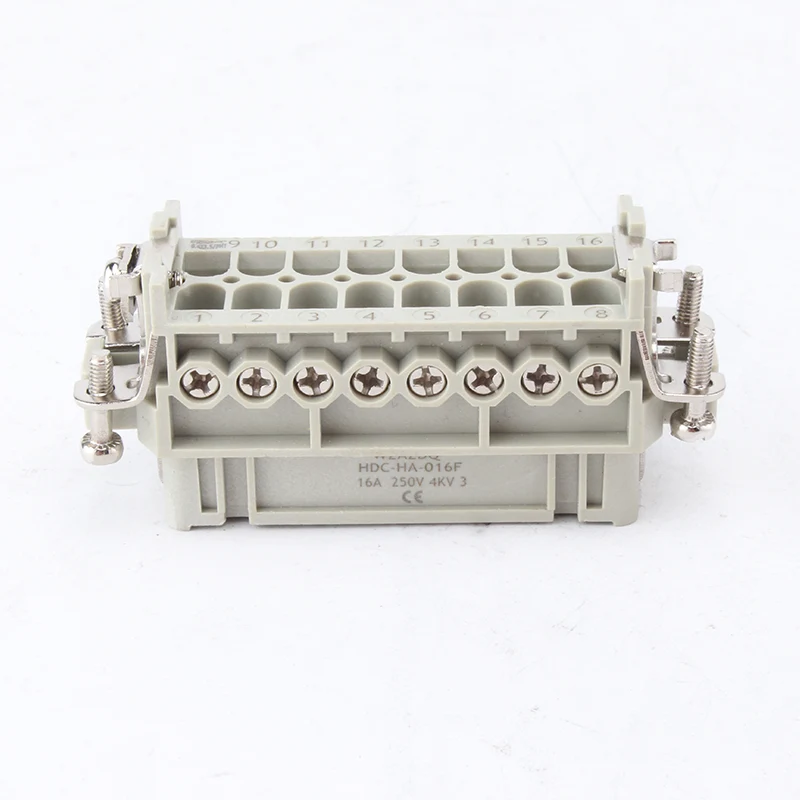 16A 10 істікшелі кірістіру ауыр жүк коннекторлары әйел және еркек инертті бөлшектер болып табылады. HA-016-M және HA-016-F - ерлер мен әйелдер бөлігі, олар жиынтық ретінде бір-біріне сәйкес келеді. Олар H16A алюминий корпусымен бірге жұмыс істейді. Кірістіру компоненттері мен сыртқы корпус бірге қосқыштың толық өнімін құрайды. Олар ДК қабығынан және күміс жалатылған жезден жасалған түйреуіштерден жасалған. Күміс жалатылған түйреуіштер оны жақсы электр қосылымдарын жасайды.