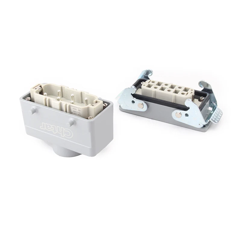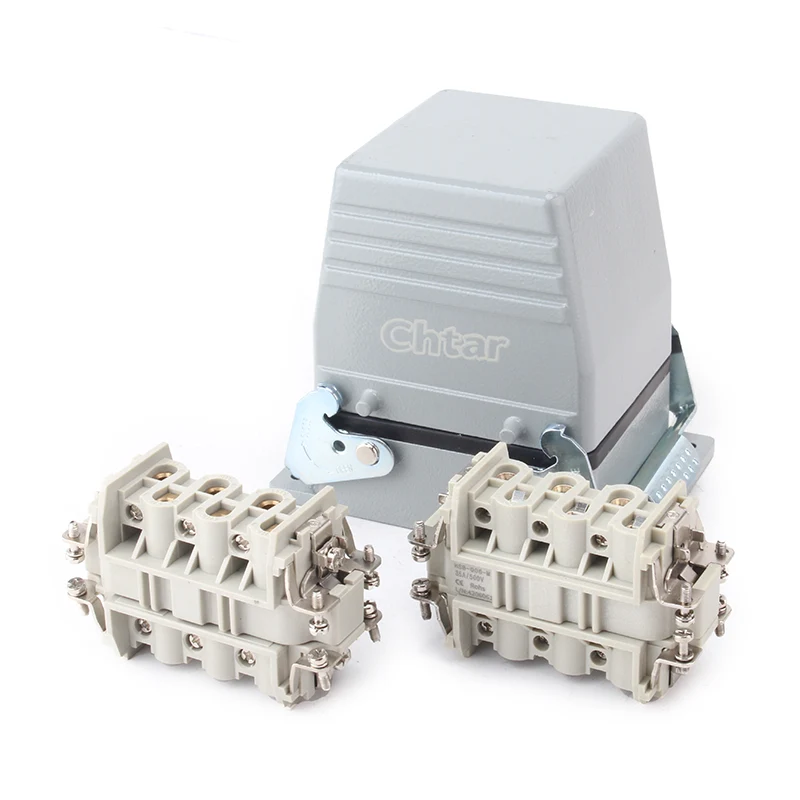 35A 6 істікшелі кірістіру Ауыр жүк қосқышы жұмыс істейді H16B алюминий Ауыр жүк қосқышының корпусы. Ол берік ДК материалынан жасалған және жезден күміс жалатылған .CHTAR жез түйреуіштері күміспен қапталған, бұл сапалы және жақсы электр өткізгіштікке ие. Құрамында жақсы су өткізбейтін функция жасау үшін тығыздағыш резеңке бар.
