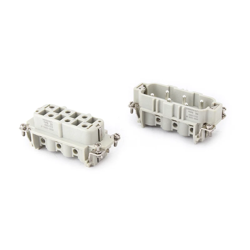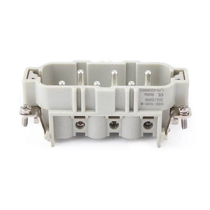 HSB-006-M HSB ауыр жүк қосқыштары 35А ток астында жұмыс істейді.35A 6 істікшелі кірістіру ауыр жүк қосқышы сымдармен жанасу үшін 6 істікшелі немесе қос 12 істікшелі болып табылады. Ол әртүрлі жұмыс жағдайларын ұсынады және автоматты салаларда және машинаның сымдарын қосу түрлерінде танымал.
