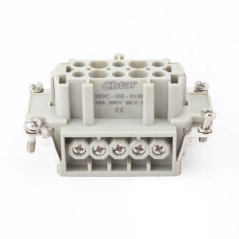 CHTAR берік M/F 10 істік кірістіргіш ауыр жүк қосқышы ауыр жүк қосқышының H10B корпусымен бірге пайдаланылады. Оның 10 түйреуіштері бар және 10 сым арқылы қосылған. Олар жоғары берік компьютерден жасалған және ішінде жезден күміс жалатылған түйреуіштер бар. Біз сіздің Қытайдағы сенімді ұзақ мерзімді серіктес болуды асыға күтеміз.