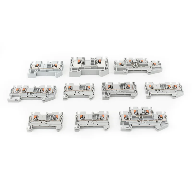 PT 10 Feed Through Din Rail терминал блогы сымдарды қосуды жеңілдететін итермелейтін қосылым технологиясын қамтиды - ешқандай құрал қажет емес. Пайдаланушылар дайындалған сымды тікелей енгізе алады, ал біріктірілген серіппелі қысқыш механизм оны сенімді түрде бекітеді. Бұрандалы қосылымдармен салыстырғанда бұл жаңалық тиімділікті күрт арттырады, сымдарды қосу уақытын 80%-ға дейін қысқартады және кірістіру күшін шамамен екі есе азайтады. Нәтиже - жылдам интеграция және аз еңбек күші.